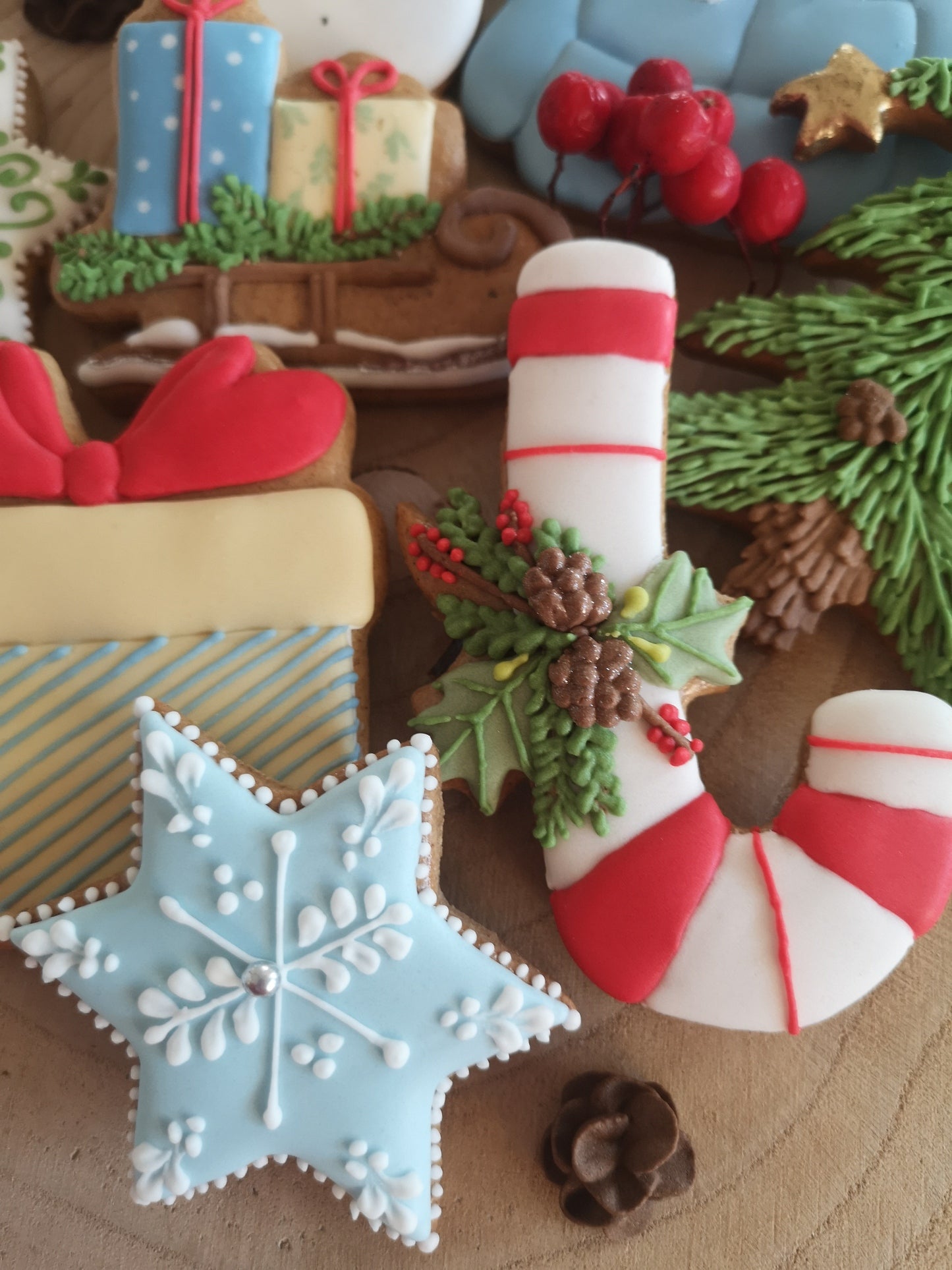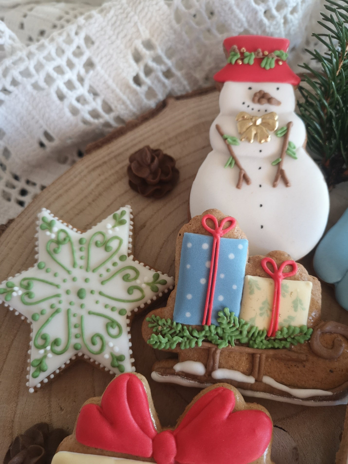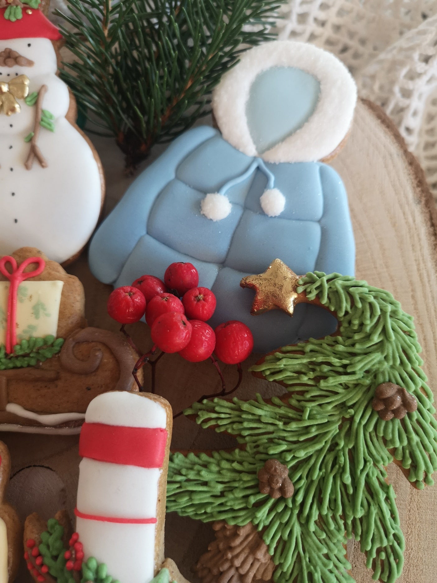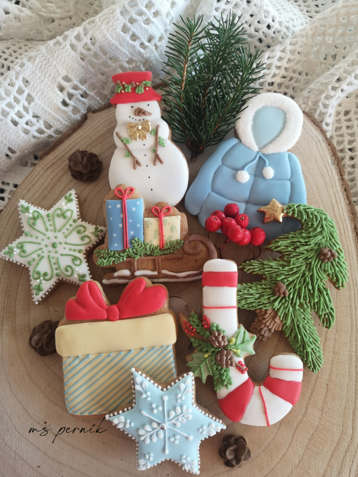 mouka pšeničná, mouka žitná, cukr, med, máslo, vejce, perníkové koření, jedlá soda; poleva: cukr, vaječný bílek sušený, kukuřičný sirup, vanilková emulze